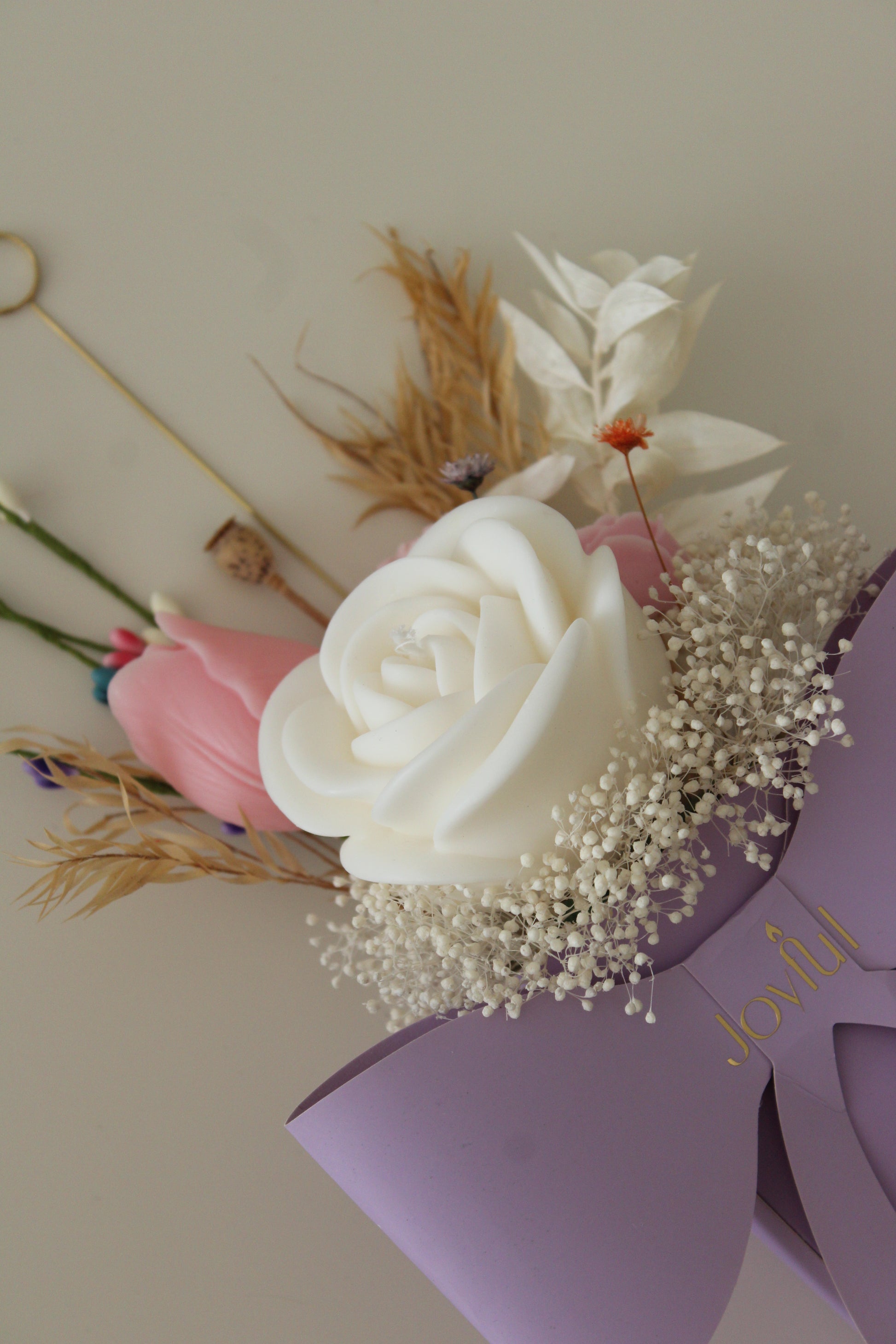 A beautifully handcrafted flower candle arrangement designed to bring elegance and charm to any occasion. Made with delicate floral candles in white and soft pastel tones, this arrangement is perfect as a thoughtful gift.